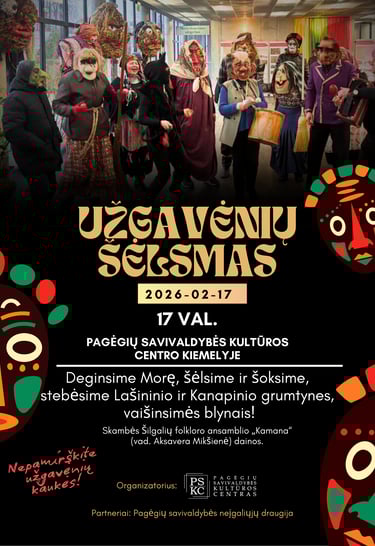 Bilietus į mokamus renginius galite įsigyti kultūros centro bilietų kasoje arba rezervuoti tel. nr. 0 634 131 88