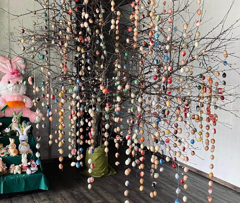 Velykiniame zuikių slėnyje išdidžiai įsitaisė margučių medis, ant kurio - daugiau nei TŪKSTANTIS įvairiaspalvių kiaušinių!